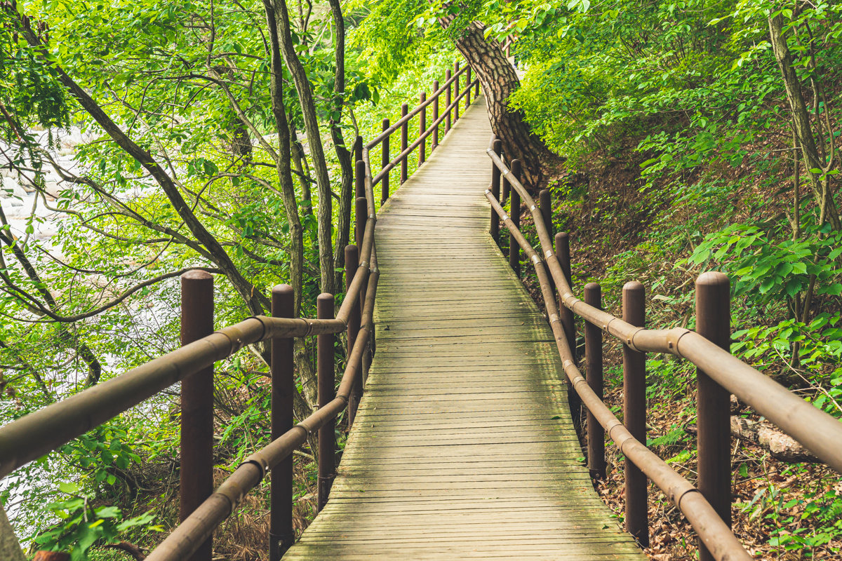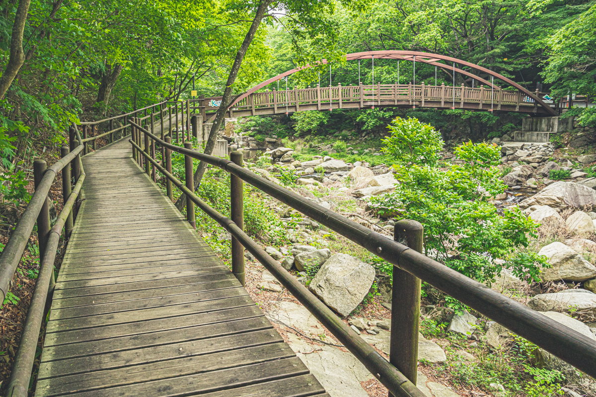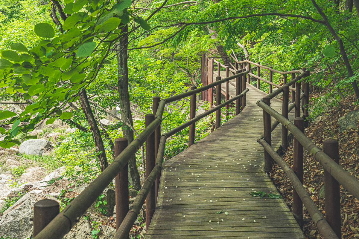 가야산 소리길은 계곡을 몇 번이나 가로지른다. 계곡을 오른쪽에 둔 채로 걷다가, 어느새 왼쪽에서 물소리가 들려오는 식이다. 흔들 다리가 곳곳에 놓여 있어, 홍류동계곡의 비경을 자세히 살펴볼 수 있었다. 그러다 등장하는 쉼터는 정말이지 시의적절하기 그지없다. 쉼터의 유혹을 이겨내야 할 이유는 딱히 없었다. 깨끗한 공간을 찾아 잠시 쉬어본다. 눈을 감고, 큰 숨을 들이마시기도, 가슴을 쭉 펴보기도 했다. 서두를 필요는 없잖아.