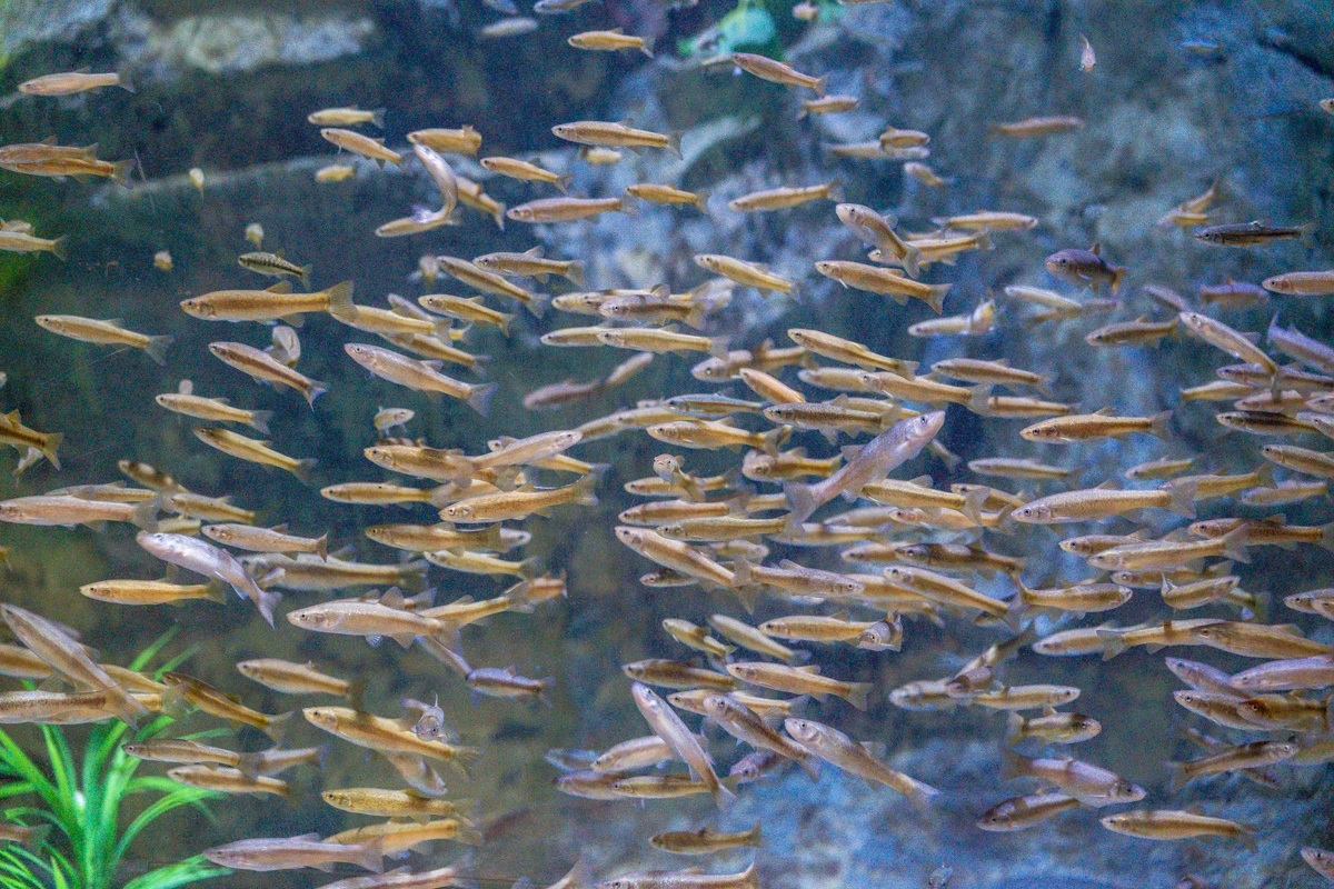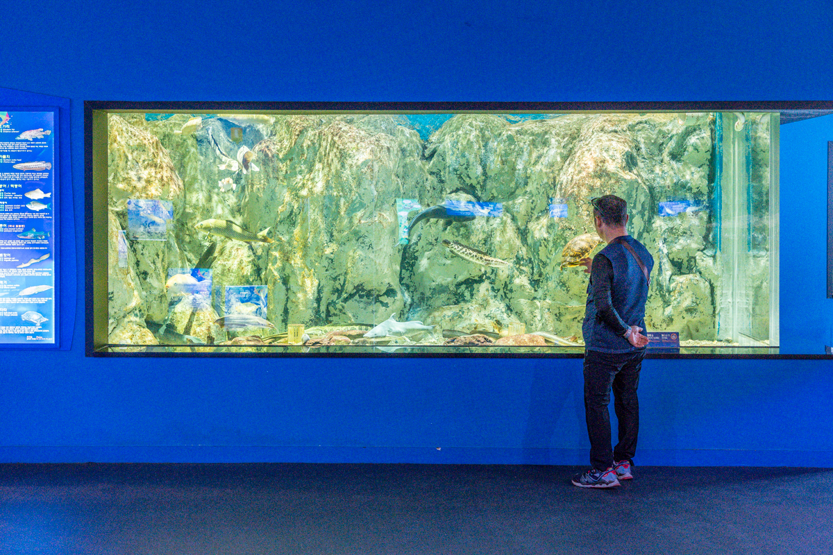 아쿠아리움이라면 빼놓을 수 없는 곳, 대수조도 있다. 수많은 물고기가 이리저리 유영하거나, 떼를 지어 다니기도 한다. 해양 아쿠아리움 부럽지 않은 수준이다. 대수조 앞은 당연히 최고의 포토존, 그냥 지나치지 말자.