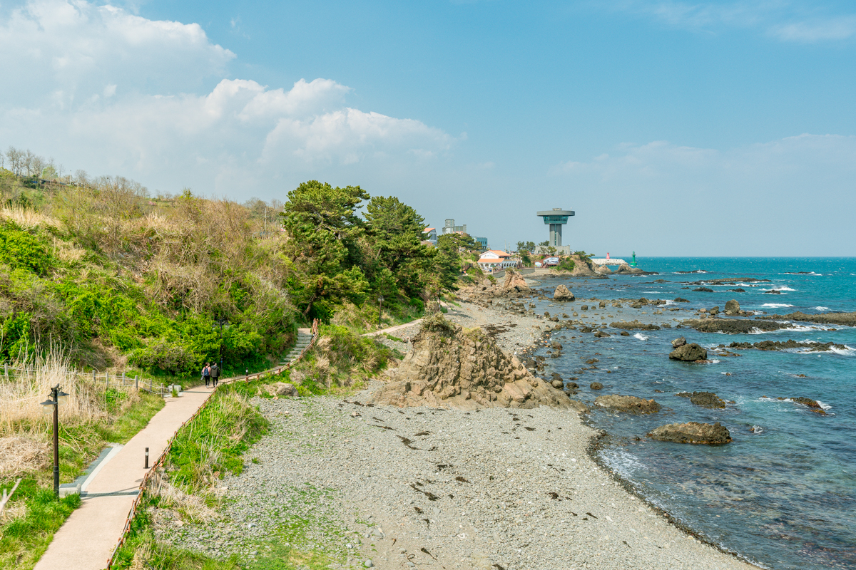 중간 지점에서는 전망대도 들렀다. 양남주상절리의 랜드마크 같은 거다. 사실 아무것도 없을 때 더 예쁘긴 했던 것 같지만, 뭐. 전망대만 찾아도 양남주상절리의 풍경을 한눈에 살펴볼 수 있다.