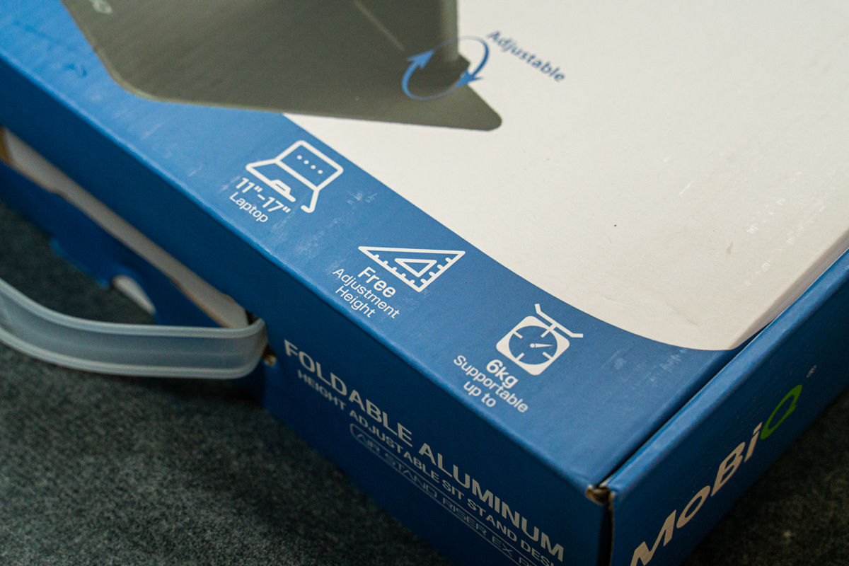 모비큐라는 업체에서 판매하는 알루미늄 거치대 AIR STAND EX Riser Pro 3단 제품이다. 맥북, 노트북, 태블릿 등을 거치할 수 있다고 홍보한다.