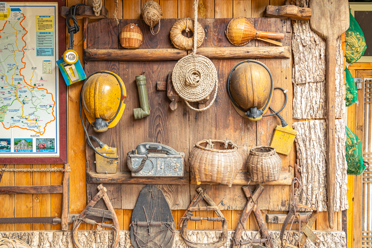 펜션 곳곳에서는 골동품을 여럿 만나볼 수 있기도 한데요. 주인장이 꽤 오랫동안 모아 온 것들이라고 해요. 옛 생활용품이나 각종 농기구, 광산 지역이었던 태백에서만 볼 수 있는 여러 장비가 가득합니다. 아이들에게는 교육 자료가, 어른들에게는 추억 속 이야깃거리가 되어주기도 할 테죠.