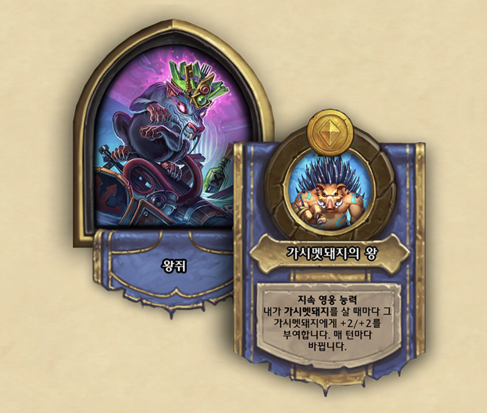 내가 가시멧돼지를 살 때마다 그 가시멧돼지에게 +2/+2를 부여합니다. 매 턴마다 바뀝니다.