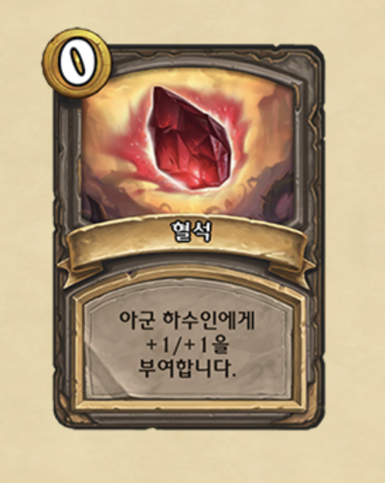 혈석은 아군 하수인에게 +1/+1을 부여하는 주문인데요.