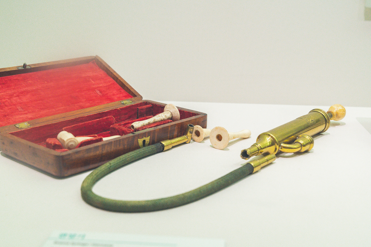옛 한약방을 재구성해 선보이는 공간도 있습니다. 이 공간을 구성하는 모든 물건은 전부 실제 유물로 이루어졌다고 해요. 궁궐의 어의가 왕의 행차 때마다 소지하고 다녔다는 왕실 휴대용 약 상자, 이중으로 만든 사약 보관함인 '독극약궤' 등도 흥미롭습니다.