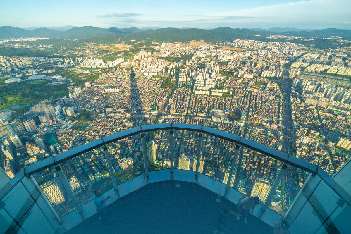 서울스카이는 국내에서 가장 높은 것은 물론이고, 세계에서도 네 번째로 높은 전망대다. 주변에 높은 건물이 함께 있다면 좋겠지만, 혼자서만 덩그러니 솟아 있어 묘한 느낌을 선사한다. 아마 드라마 <스카이캐슬>의 펜트하우스가 이런 느낌이지 않을까(물론 스카이캐슬에 등장하는 주상복합아파트는 가상의 건물이다).