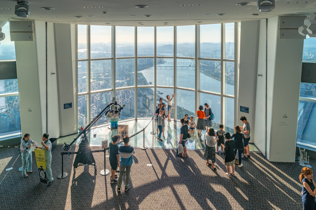 서울 어디에서도 볼 수 있는 롯데월드타워는 그 높이만 해도 555m에 달한다. 지상으로만 123층에 달하는 이 건물은 국내 최고 높이의 빌딩이다. 남산에서 만났던 한 외국인이 내게 ‘저 사우론의 탑 같이 생긴 건 도대체 뭐야?’라고 물었을 정도로 어마어마한 건물. 한국의 스카이라인을 송두리째 바꿔놓기 시작한 이 건물의 상층부에는 전망대가 있다. ‘서울 스카이’라 불리는 곳이다.
