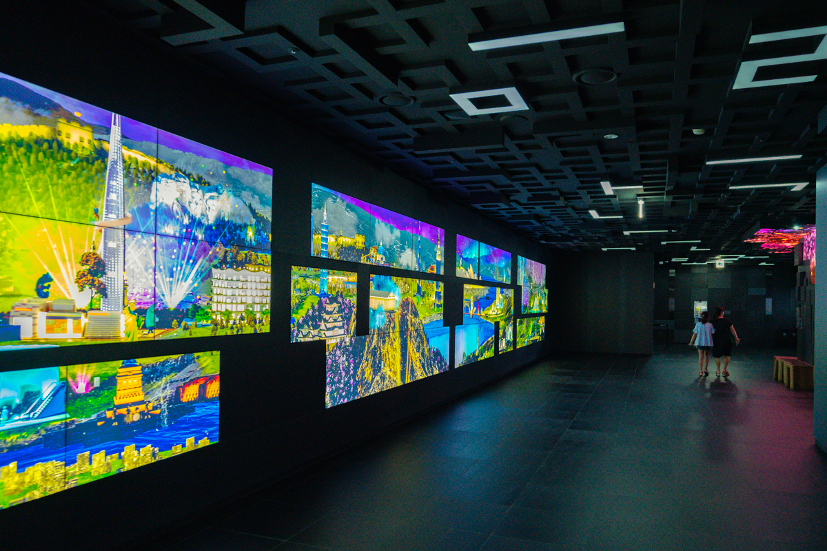 입구에 들어서는 순간 화려한 디스플레이가 관람객을 맞이한다. 디스플레이로 벽면을 가득 메운 것이 인상적이다. 포토존에서 (반강제로)기념사진을 남긴 뒤, 보안검색대를 통과하면 전시관으로 이어진다. 롯데월드타워 건설 때 사용했던 기술들을 이 전시관에서 소개하고 있다.