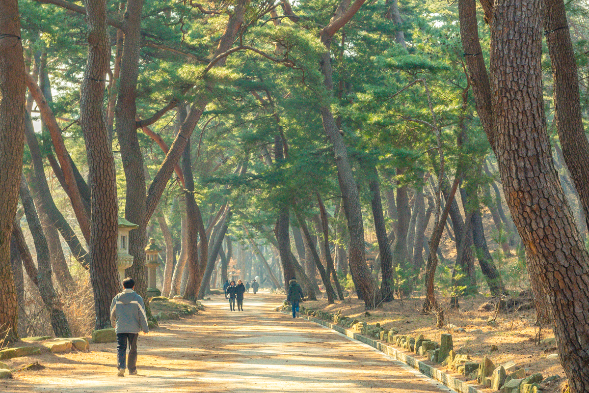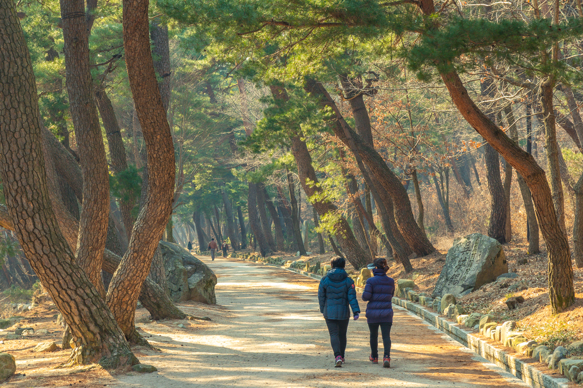 뭐, 무료주차장을 이용하려는 것도 있었지만, 사실 걷고 싶었어요. 안쪽으로 길게 무풍한솔길이라는 이름의 소나무 숲길이 있습니다. 걷기에 좋은 길이에요. 차도와 분리되어 이어지는 길이라 고요하고 평온합니다.