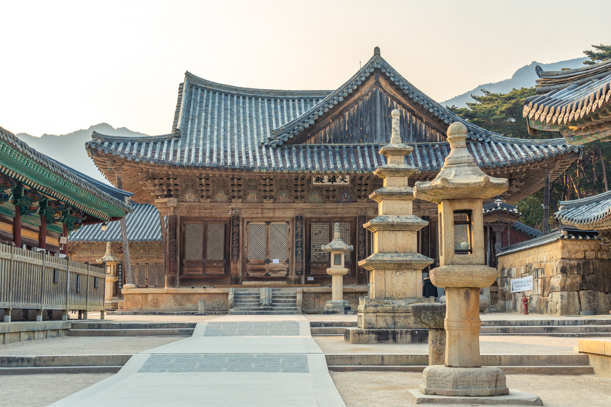 불교 사찰에는 다섯 개의 문이 있습니다. 그중에서도 불이문은 부처를 만나러 가는 마지막 관문이죠. 그 너머로 통도사의 가장 위엄 넘치는 전각이 있습니다. 대웅전입니다. 대웅전은 중후한 인상을 지닌 주지스님을 닮았습니다. 석가모니의 진신사리가 모셔져 있다는 금강계단 옆에서 오랜 세월을 함께 한 흔적이 고스란히 느껴집니다. 오랜 역사가 담긴 듯한 나무의 결이나 수선의 흔적들이 긴 시간을 품어내고 있습니다. 대웅전 앞에서는 한없이 작아지는 기분이에요.