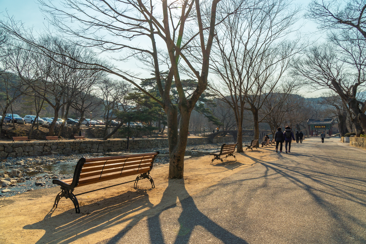 통도사는 멀었습니다. 고속도로로 한참이나 달리다가, 국도로 방향을 틀었어요. 산 넘고 물 건너서. 봄의 기운 어렴풋이 느껴지는 풍경을 찾아가는 순간이 꽤 오묘하게 느껴집니다. 통도사 입구에 차를 주차했습니다. 차량으로 일주문을 지나면 주차요금이 포함되거든요.
