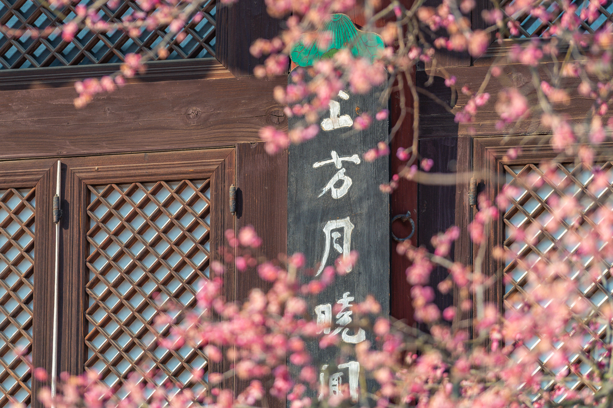 영각 앞에도 예쁘게 꽃이 피었습니다. 여기가 홍매화 성지라고 불리는 곳이더랬지요. 봄이 오고 있음을 자각했습니다. 전통 무늬로 가득한 영각과 홍매화나무가 어우러지며 한국적인 색채를 선보입니다. 아직 100% 개화한 것은 아니지만, 뭐 어떻습니까. 봄이 왔다는데.