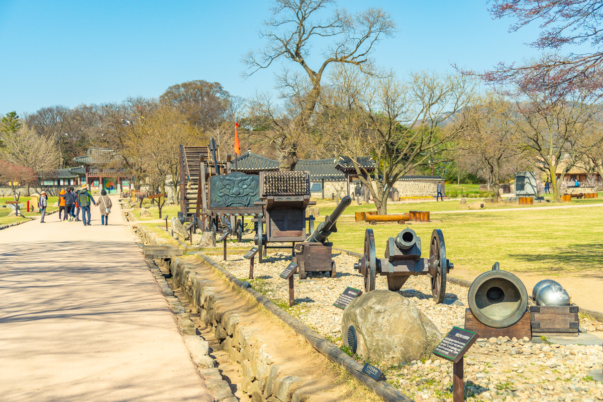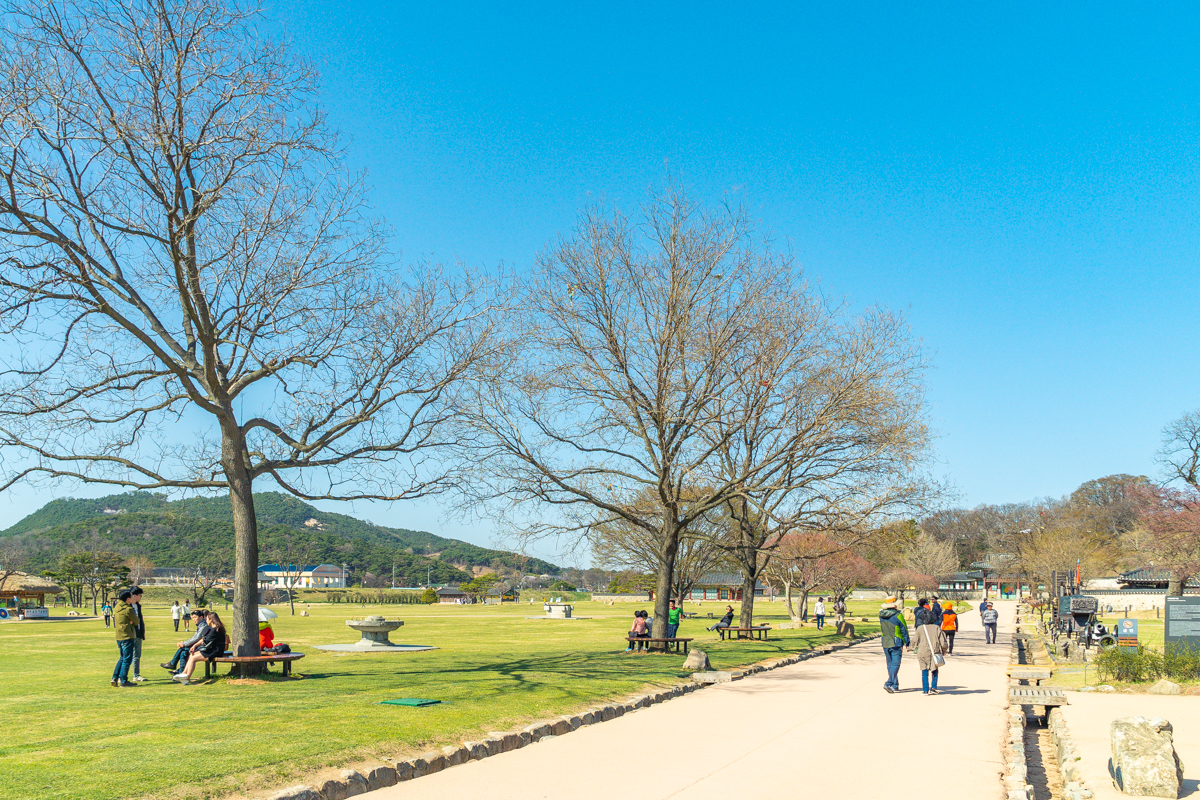 해미읍성 안쪽으로 이어지는 산책길을 따라 거닐어보세요. 푸른 잔디와 오랜 세월 자리를 지키고 서 있었던 것만 같은 벚나무를 찾아보세요. 가장 안쪽에는 소나무 숲이 펼쳐져 있기도 합니다. 그 꼭대기에는 유유자적 시간을 보낼 수 있는 정자 ‘청허정’도 있네요. 복원한 동헌과 객사를 비롯해 과거 해미읍성의 모습을 가늠해 볼 수 있는 여러 시설물을 살펴보는 재미가 쏠쏠합니다.
