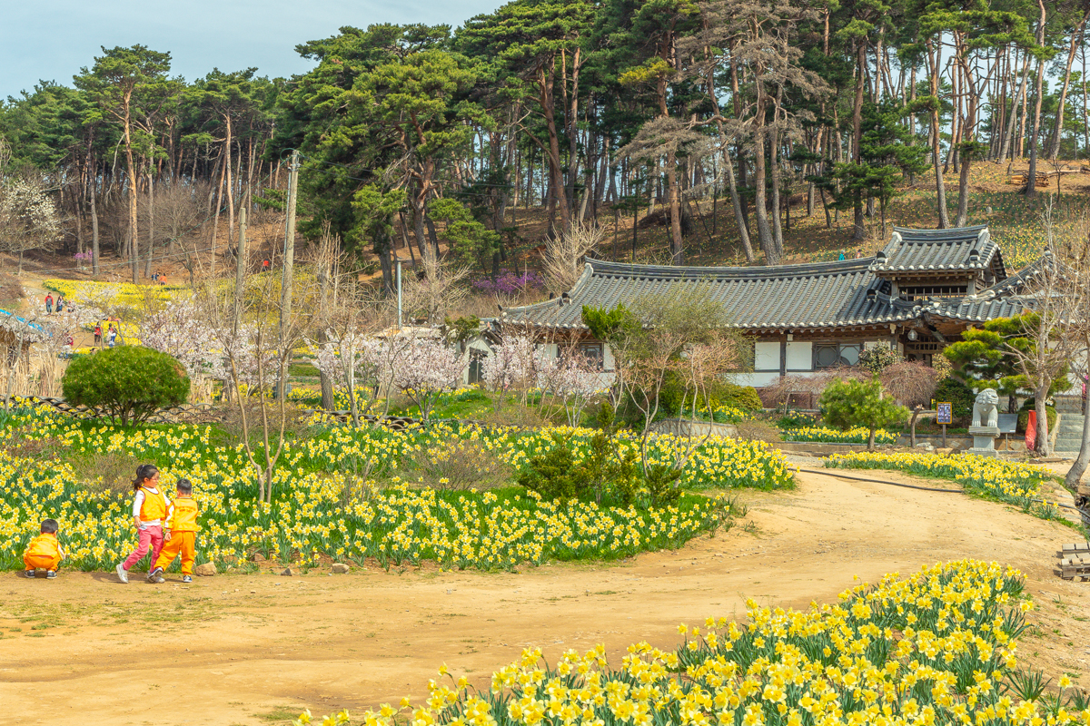 서산에서는 매년 봄, 유기방가옥에 관람객이 몰립니다. 조선 후기의 고택 중 하나일 뿐인 유기방가옥이 사람들의 관심을 얻게 된 것은 다름아닌 수선화 덕분이죠. 고택 주변에 심은 수선화는 고택을 더욱더 아름답게 꾸며주는데, 그 모습이 무척 장관입니다.