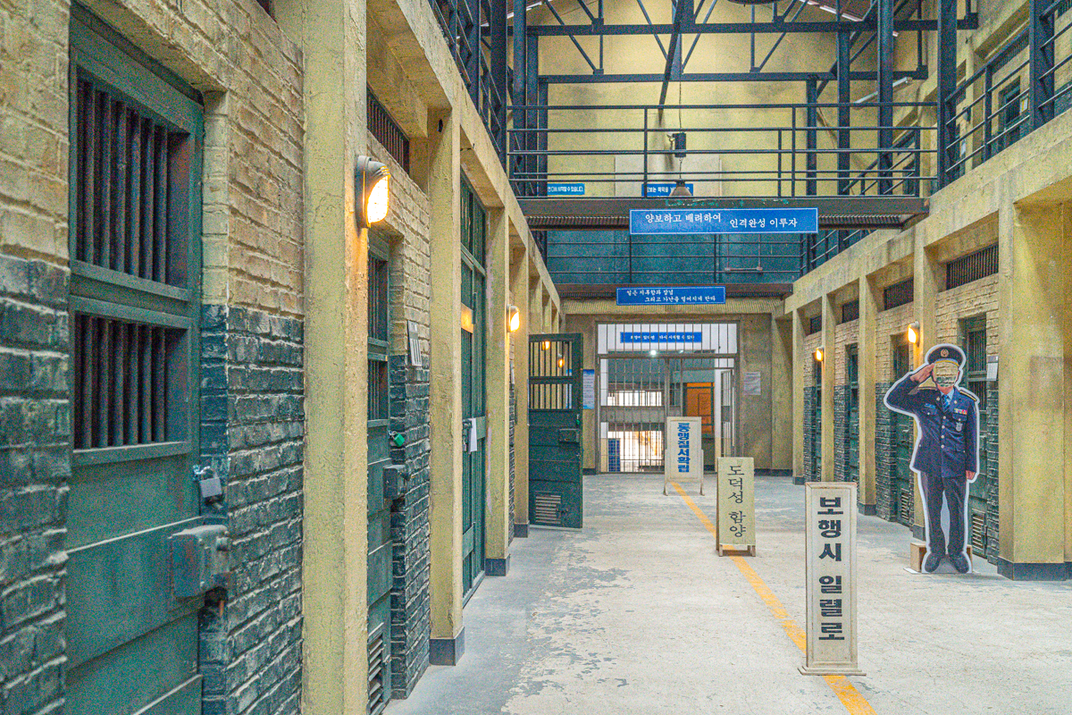 교도소 건물 내부에는 독방과 다인실, 면회실 등이 완벽하게 갖추어져 있기도 합니다. 여러 수감실이 모여 있는 복도 한가운데 서 있으면, 정말 교도소에 들어온 것 같은 느낌마저 듭니다. 뭔가 오싹해요. 곳곳에 붙은 표어들도 실감 나는 요소 중 하나입니다.
