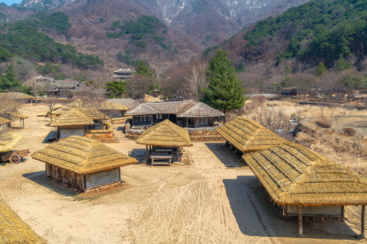 문경새재 오픈세트장에는 궁궐 외에도 여러 종류의 사대부 가옥이 있습니다. 중산층의 선비부터 고위 관료들의 집도 구현하고 있습니다. 서민들의 공간인 초가와 저잣거리도 완벽하게 재현했습니다. 세트장 주변부를 둘러싸고 있는 성곽은 전투 씬을 촬영하기 위한 곳입니다.