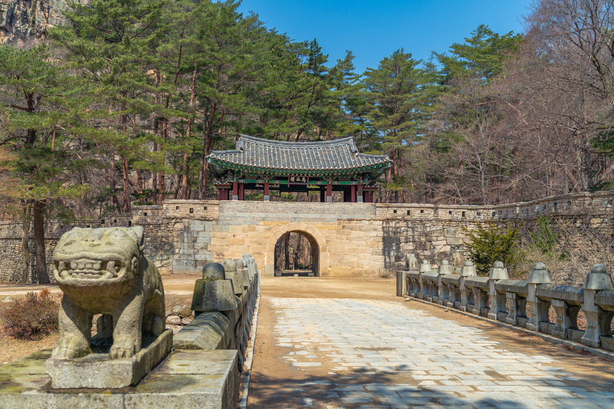 문경새재 제1관문 주흘관 뒤로는 문경새재 오픈세트장이 있습니다. KBS가 고려 배경의 사극을 촬영하기 위해 만든 세트장입니다. 이후 리모델링을 거쳐 조선 시대 세트장으로 변신했는데요. 광화문을 비롯해 조선 궁궐의 주요 건축물을 한눈에 살펴볼 수 있는, 흥미로운 공간입니다. 우리가 아는 사극 대부분, 특히 최근 방영 중인 <태종 이방원>의 촬영지도 이곳입니다.