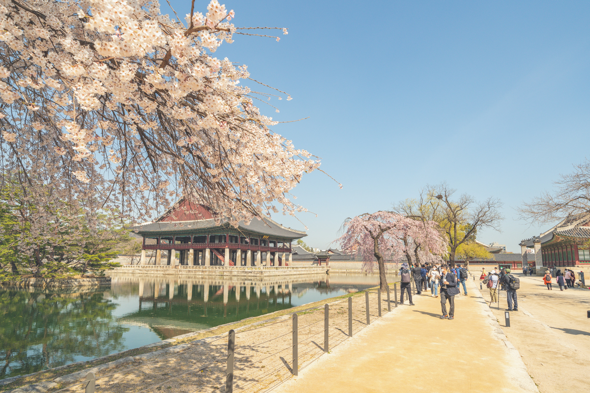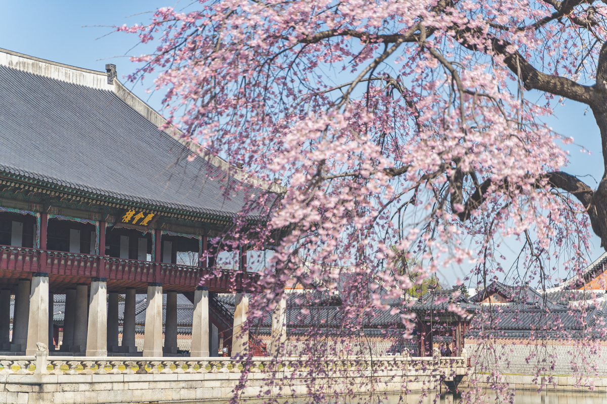 봄. 봄마다 경복궁을 찾는 이유가 있다. 벚꽃이 아름답게 피어나는 곳 중 하나이기 때문이다. 경복궁에는 다른 곳에서 쉽게 볼 수 있는 ‘왕벚나무’보다 다른 나무가 더욱더 사랑을 받고 있는데, 수양벚나무다. 길게 늘어뜨린 가지에 피어나는 벚꽃은 경복궁의 풍경과 어우러지며 한 폭의 동양화와 같은 모습을 선보인다.