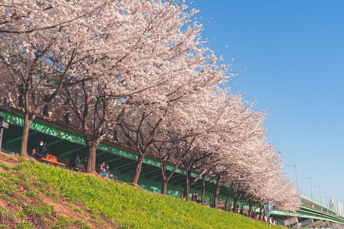 대학 시절이었다. 중간고사 준비가 한창이었는데 공부가 너무 하기 싫은 거다. 집중도 잘 안 되는데 마침 바깥엔 벚꽃이 만발이었다. 하필 캠퍼스에도 벚꽃이 수두룩했다. 벚꽃과 중간고사 직전 특유의 묘한 우울감으로 뒤섞인 학교에서는 도저히 공부를 할 수 없다는 판단에 이르렀다. 대여섯 시간 정도 공부할 자료를 가방에 욱여넣고는 길을 나섰다. 목적지는 안양천. 의외로 공부가 잘 되었던 기억이 있다. 그 과목에서 무슨 점수를 받았는지는 모르겠지만.
