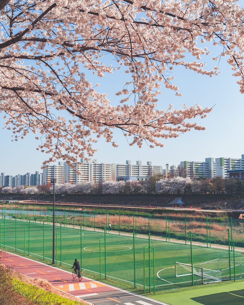 벚꽃이 가득한 안양천을 즐겨보자. 1호선 구일역에 내리면 곧장 안양천으로 갈 수 있다. 안양천 정비사업 이후 상당히 깔끔해진 모습을 볼 수 있는데, 요즘에는 공터에 꽃을 심어서 더욱더 예쁜 봄날을 만나볼 수 있는 것이 특징이다. 양쪽 둑방길 위로 왕벚나무를 가로수처럼 심어 두었고, 그 아래에는 개나리를 곁들였다.