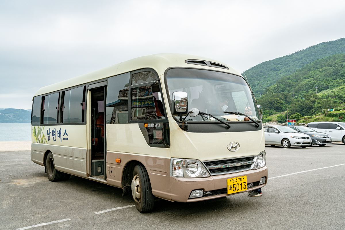 돌산도 신기선착장에서 금오도 여천선착장까지는 약 20여 분이면 닿습니다. 다만 이번 목적지인 금오도 비렁길 1코스까지 가려면 버스를 옮겨 타야 했어요. 선착장 앞에 버스가 줄지어 서 있었는데요. 그중에 함구미 방향으로 향하는 버스를 찾아 올라탔습니다. 버스요금은 2,000원. 현금으로 내야 합니다.
