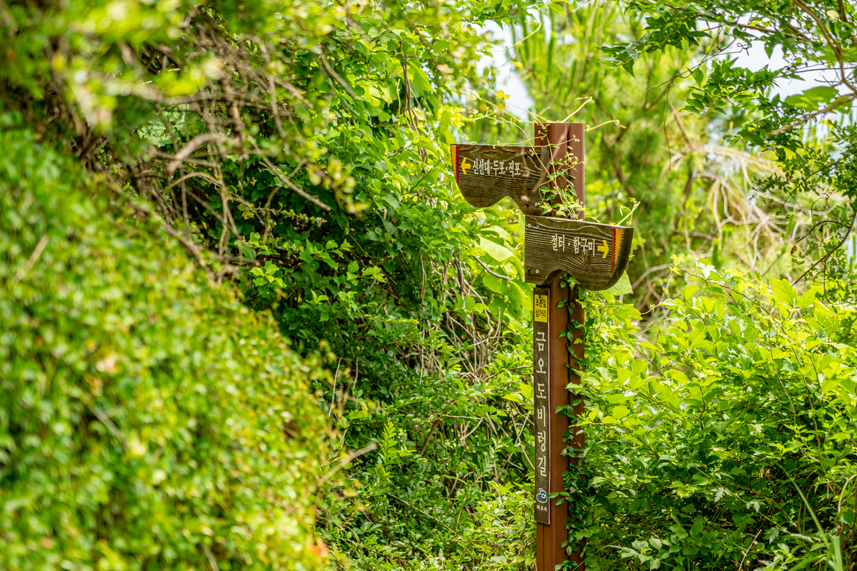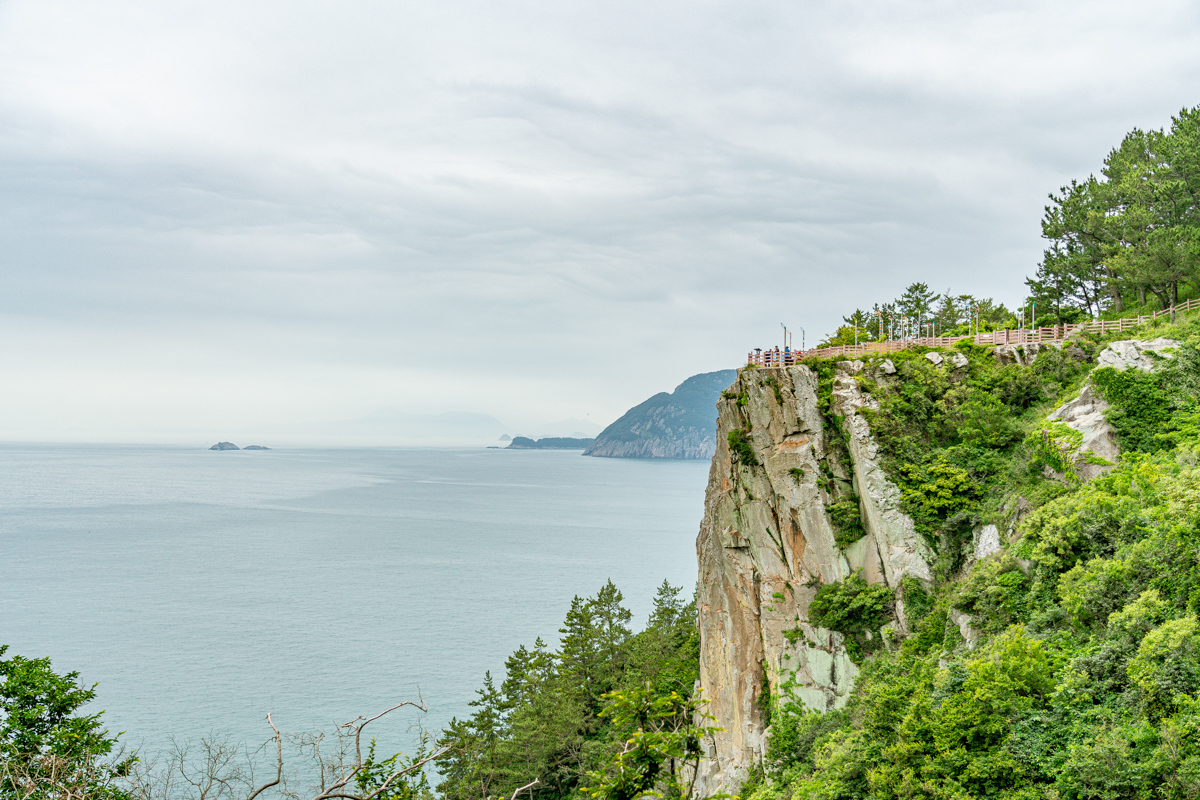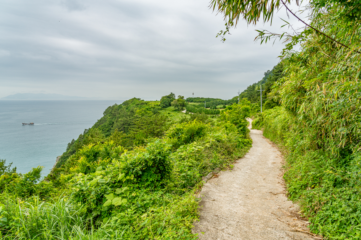 함구미항에서 첫 번째 비렁인 ‘미역널방’으로 이어지는 길에 올랐습니다. 작은 언덕만 오르면 내내 절벽을 따라 걷게 됩니다. 밤새 내렸던 비는 오히려 도움이 되었습니다. 촉촉한 공기와 폭신한 흙바닥을 내어주었거든요. 걷기에는 이보다 더 좋을 수 없죠. 발걸음이 가벼워질 수밖에 없었습니다.