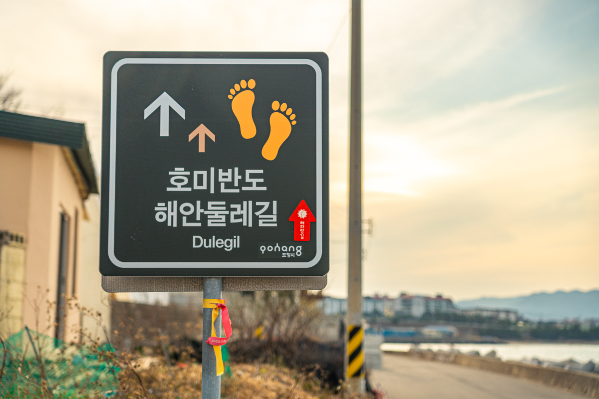 호미곶의 해돋이를 감상한 뒤에 찾은 곳은 호미반도해안둘레길 1코스입니다. 몇 년 전, 호미반도의 해안을 따라 둘레길이 조성되었다는 이야기를 들었는데, 이제야 찾았어요. 시작점은 청림운동장. 해안을 따라 걷는 길이었습니다.
