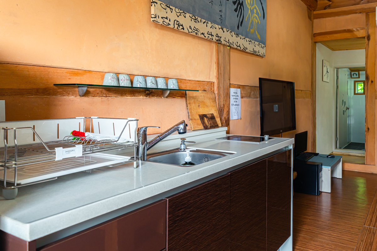 ‘다가가다한옥’은 황토와 소나무를 사용해 지은 건축물입니다. 친환경적이면서, 이곳에 묵을 때마다 자연과 어우러지는 느낌을 받을 수 있어요. 그렇다고 내부 구조가 구식인 것은 아닙니다. 원룸 형태의 객실인데요. 취사 시설과 파우더룸, 샤워실 등을 내부에 갖추고 있어 편의성까지 사로잡았습니다.