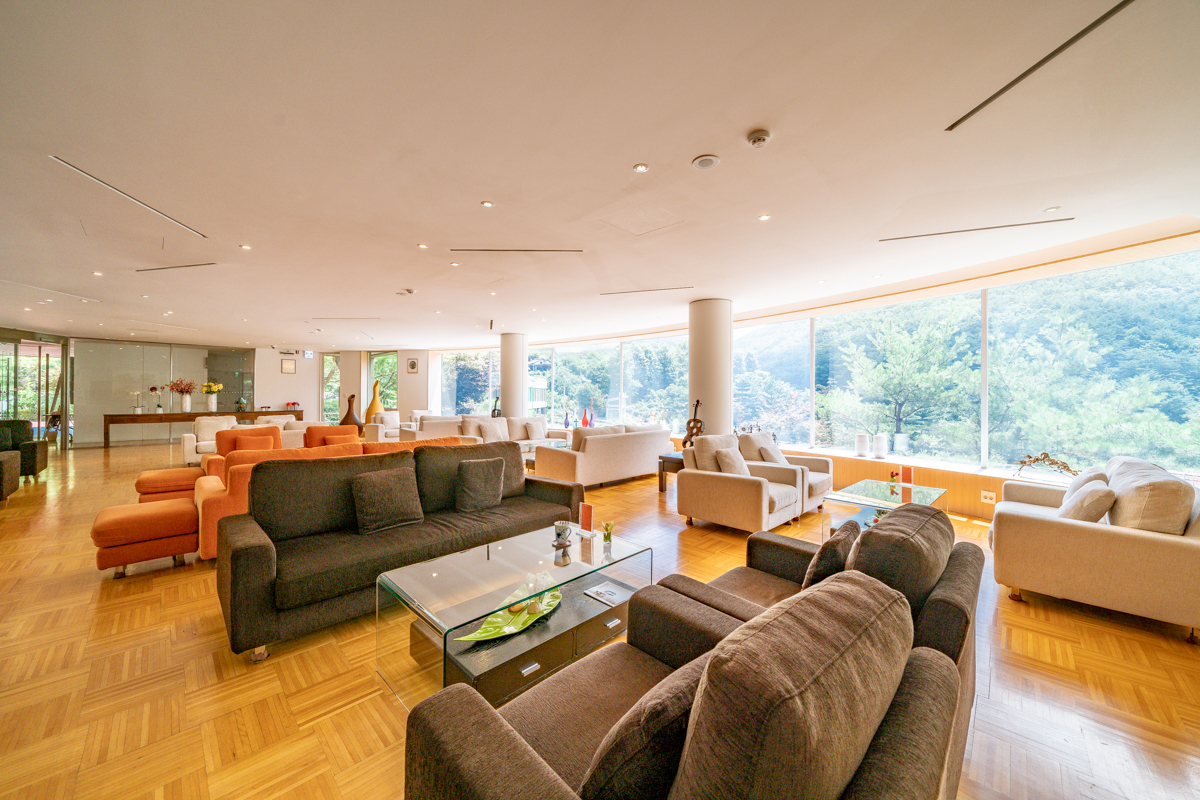 1층 로비 옆에 있는 카페 ‘마리’가 대박입니다. 조령산 쪽으로 통창을 만들어 두었는데, 한 폭의 파노라마 그림 작품을 보는 듯한 느낌이에요. 중정 형태의 테라스도 감성적입니다. 한식당 향정, 노천극장 형태의 야외공연장, 비즈니스 시설도 잘 갖추고 있습니다. 이 호텔의 모기업이 있다고 하는데, 그들의 연수원으로도 활용하는 모양이에요. 단체 워크숍을 쉽게 할 수 있을 것 같기도 합니다.