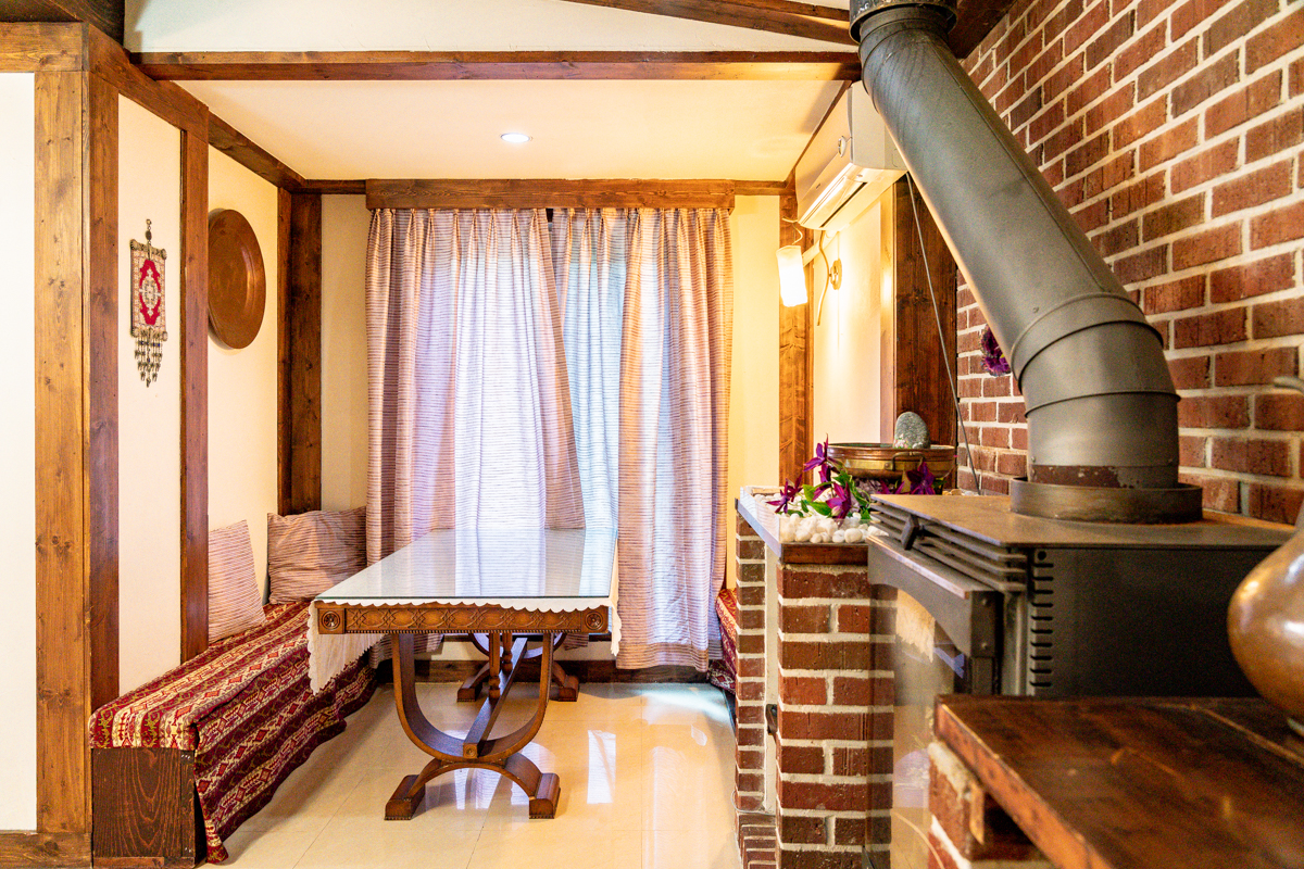 이 아름다운 정원을 곁에 두고 하룻밤 머물 수 있는 방법이 있다. 평창허브나라농원 내에서 펜션을 운영하기 때문이다. 밤에 마주하게 될 허브나라농원, 그리고 흥정산은 낮의 그것과는 사뭇 다른 느낌을 자아낸다. 이곳의 고요한 공기를 독점할 수 있는 기회다.