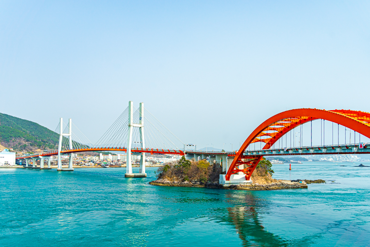 먼저 대방정류장에서 탑승하여 초양도로 향하는 코스를 즐길 수 있습니다. 탑승장을 떠나자마자 바다로 향하는 케이블카 안으로 들어서면, 해안가를 따라 펼쳐진 삼천포의 항구 시설과 마을이 한눈에 들어옵니다. 마치 미니어처를 내려다보는 듯한 창밖 풍경은 눈길을 사로잡습니다. 또한 초양대교의 붉은빛 아치와 삼천포대교의 장관이 사천만의 아름다운 풍경을 한층 더 돋보이게 합니다.
