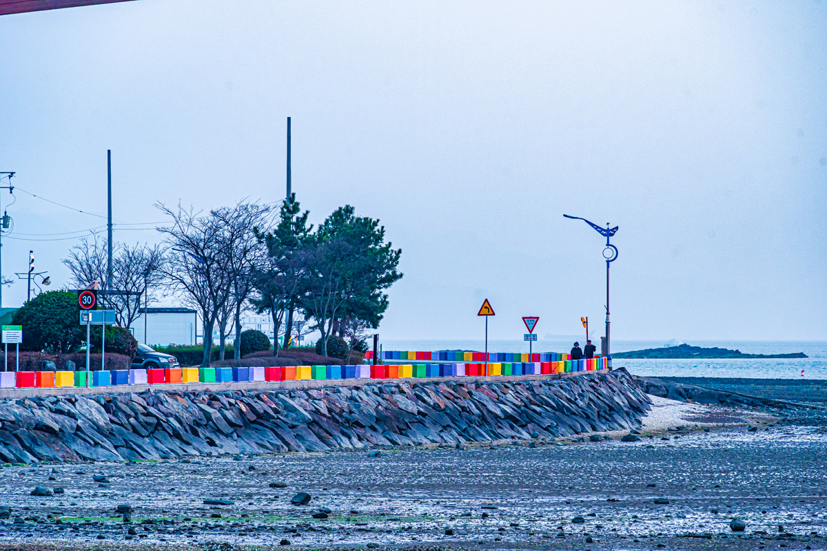 사천무지개빛해안도로는 차량이 바다 쪽으로 떨어지지 않도록 설치된 방호벽을 무지갯빛으로 채색하여 화사한 분위기를 자아냅니다. 주요 지점에는 포토존과 전망 스폿이 설치되어 있고, 주차장도 조성되어 여행자들의 편의를 도모하고 있습니다. 몇몇 포토존은 인증샷을 남기기 위해 줄을 서는 정도로 인기가 높습니다.
