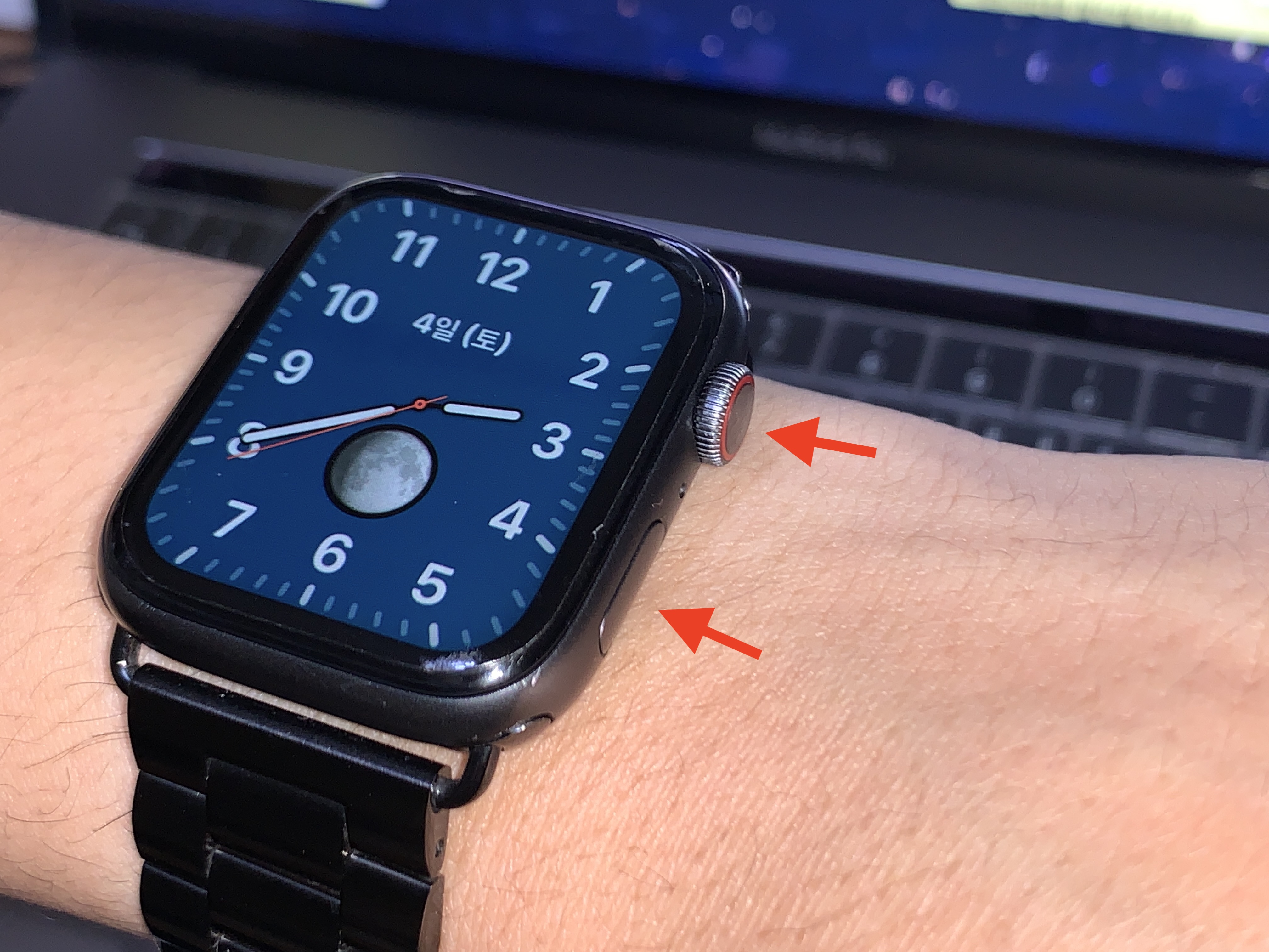4. 애플워치에서 용두와 측면 버튼을 동시에 누르기