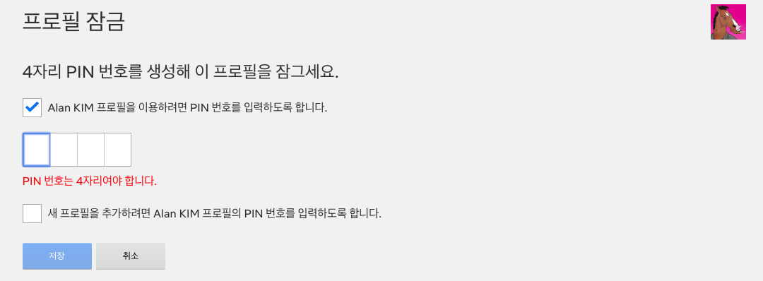 넷플릭스에서 각 프로필에 4자리 핀(PIN) 번호로 잠금을 설정할 수 있습니다. 애플리케이션에는 설정할 수 없고, 웹사이트를 통해 진입해야 합니다.
